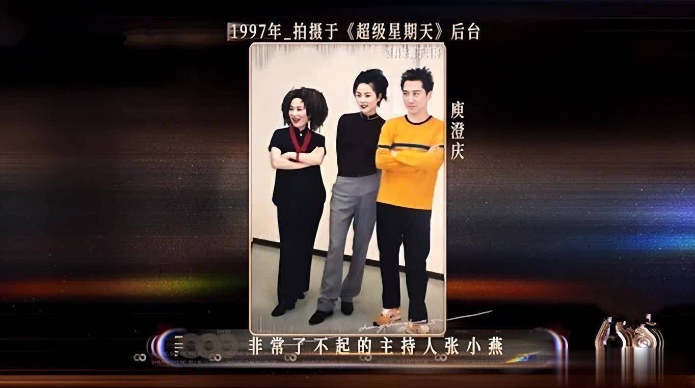 由于《再回首》是上世纪八九十年代的经典老歌,节目组顺势放出了庾澄庆和颜人中的古早照片。首先亮相的是1997年拍摄于《超级星期天》后台的庾澄庆的照片。照片里,王菲站在中间,笑容灿烂,右边的主持人张小燕也笑意盈盈,而站在王菲左边的庾澄庆却似笑不出来。
